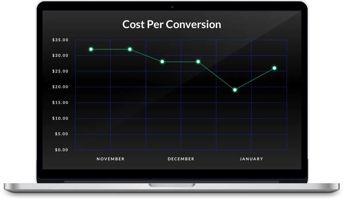 Conversions, conversions, conversions! That’s why we run marketing campaigns for clients. To get conversions. We generated a total of 85 new leads for the client during our 3 months campaign. We started with 17 conversions in November, 25 conversions in December and 43 conversions in January with the same exact ad spend, that’s an increase of 153% in conversions, in just 3 months.